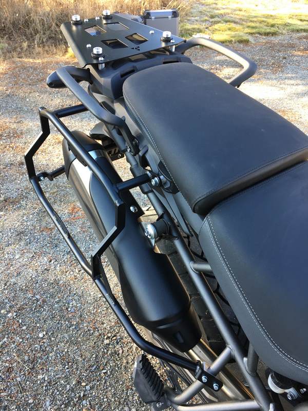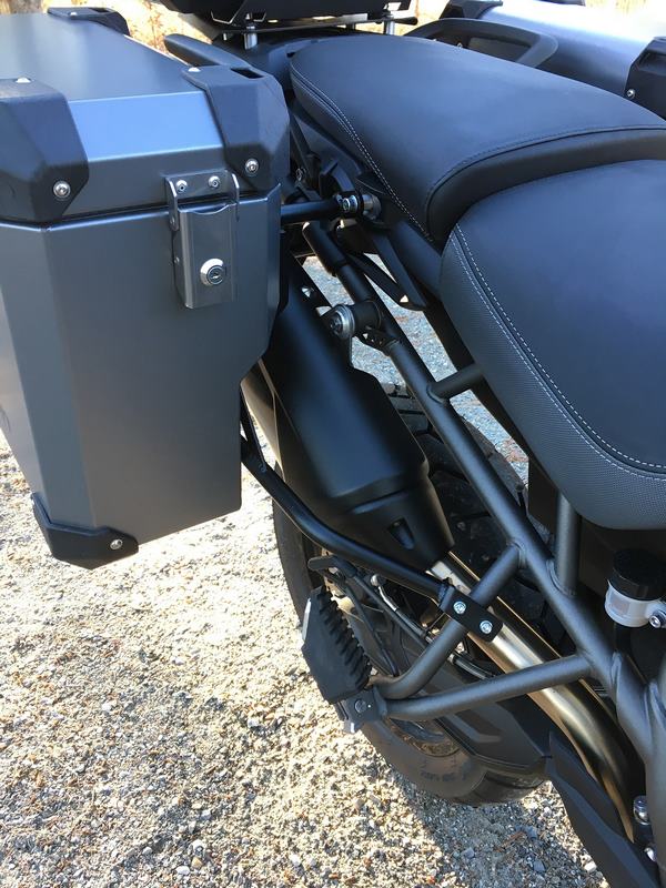 · Low profile polyamide nylon lid strap brackets (tested to 200 pounds each) for better pillion comfort and less square edges if the bike goes over