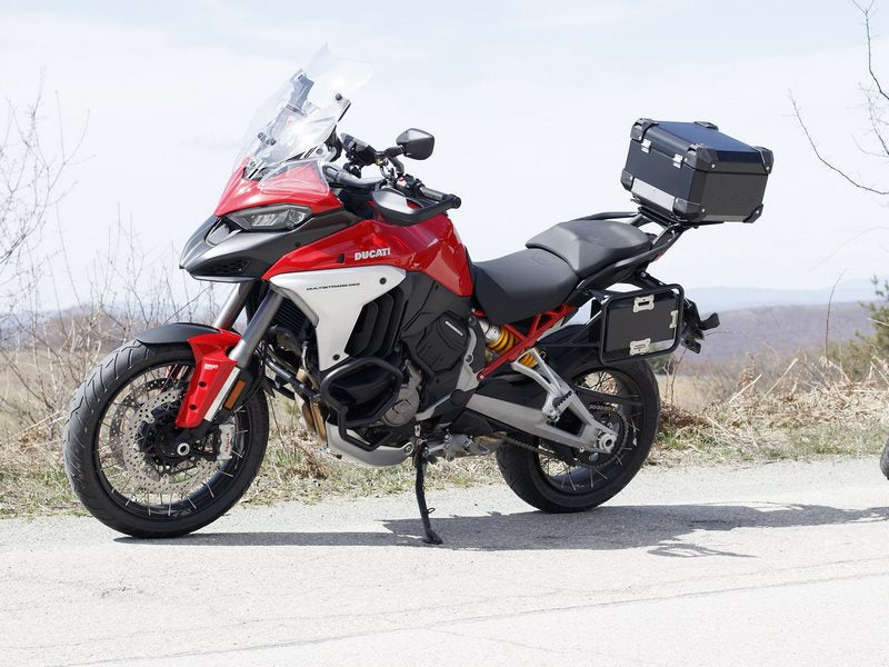 · Low profile polyamide nylon lid strap brackets (tested to 200 pounds each) for better pillion comfort and less square edges if the bike goes over