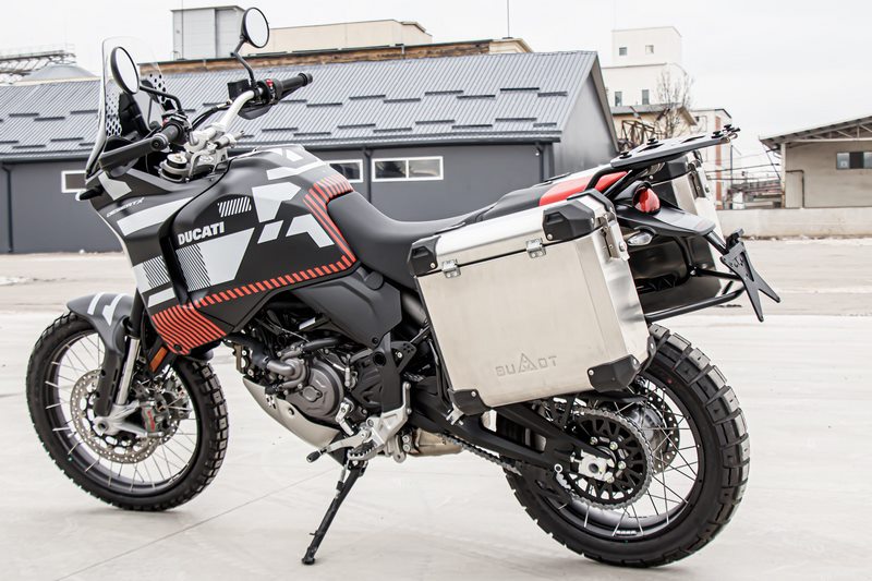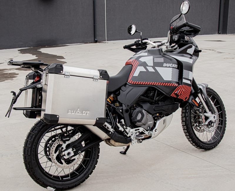 The new DEFENDER EVO BUMOT system includes the pannier rack, Left and Right pannier, pre-installed pannier mounts, pre-installed locks, and all hardware required to mount to the bike.