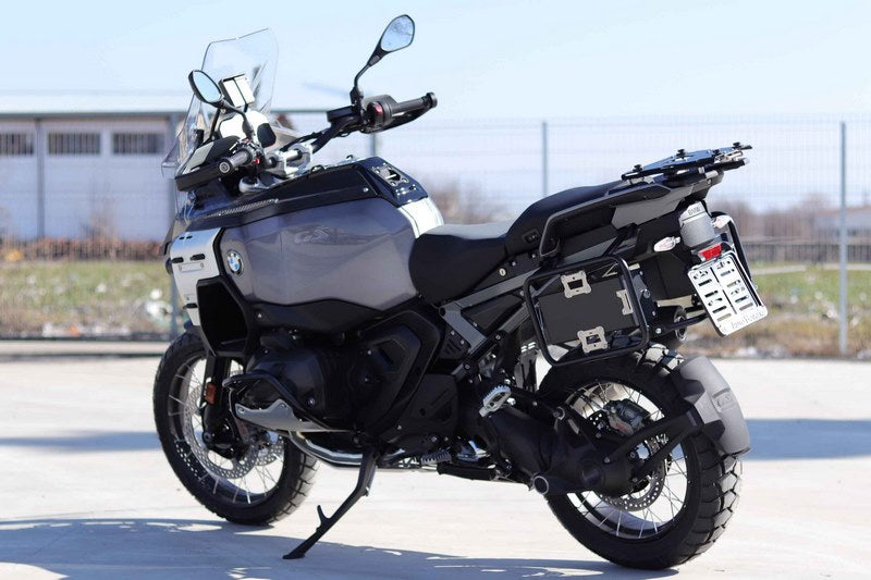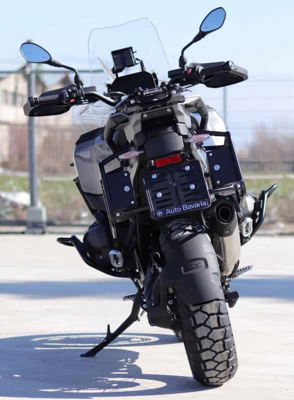 The new DEFENDER EVO BUMOT system includes the pannier rack, Left and Right pannier, pre-installed pannier mounts, pre-installed locks, and all hardware required to mount to the bike.