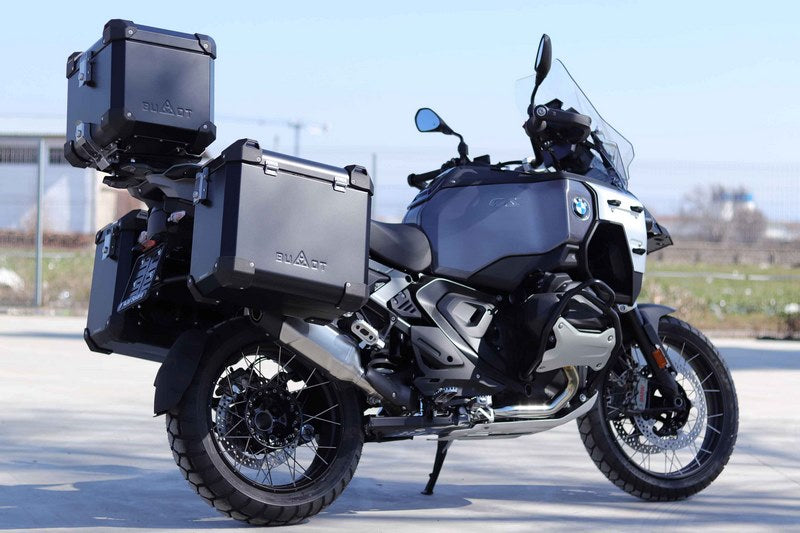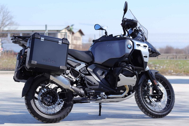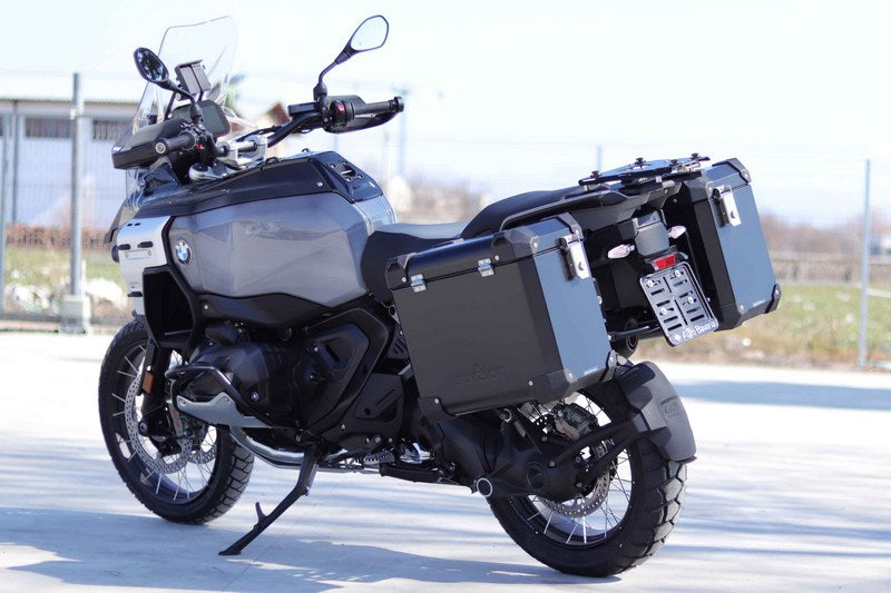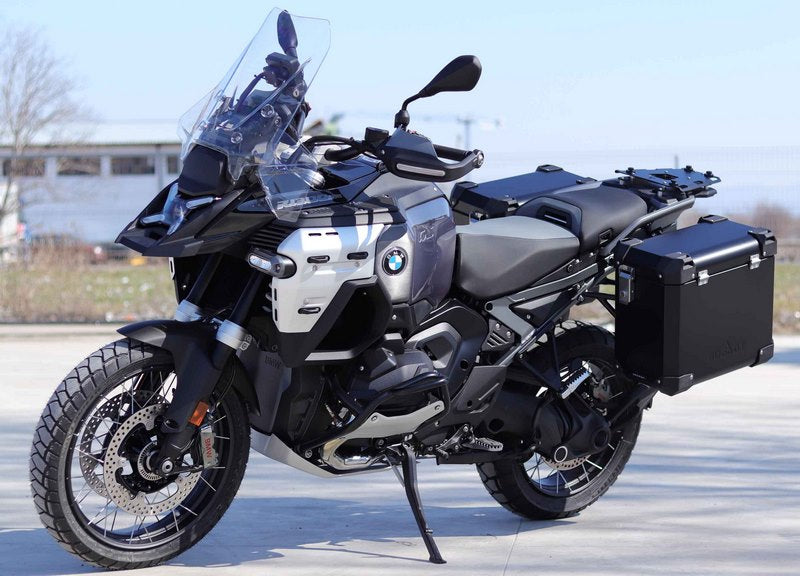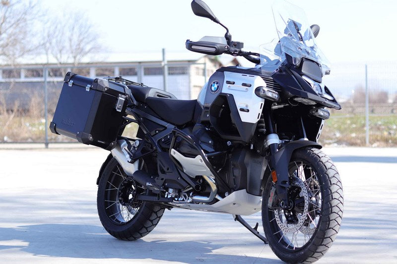 The new DEFENDER EVO BUMOT system includes the pannier rack, Left and Right pannier, pre-installed pannier mounts, pre-installed locks, and all hardware required to mount to the bike.