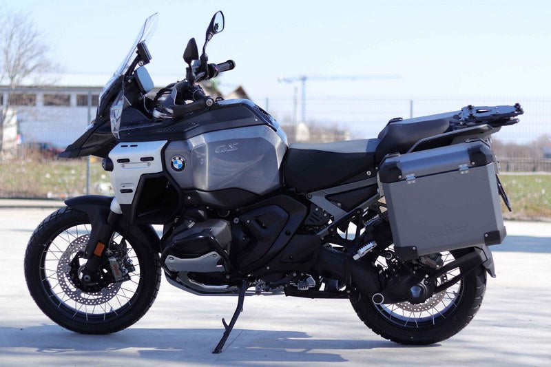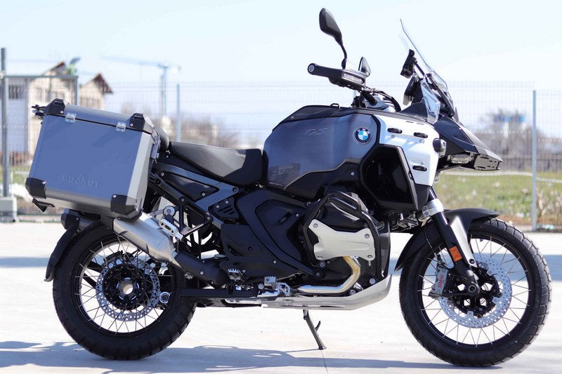 The new DEFENDER EVO BUMOT system includes the pannier rack, Left and Right pannier, pre-installed pannier mounts, pre-installed locks, and all hardware required to mount to the bike.