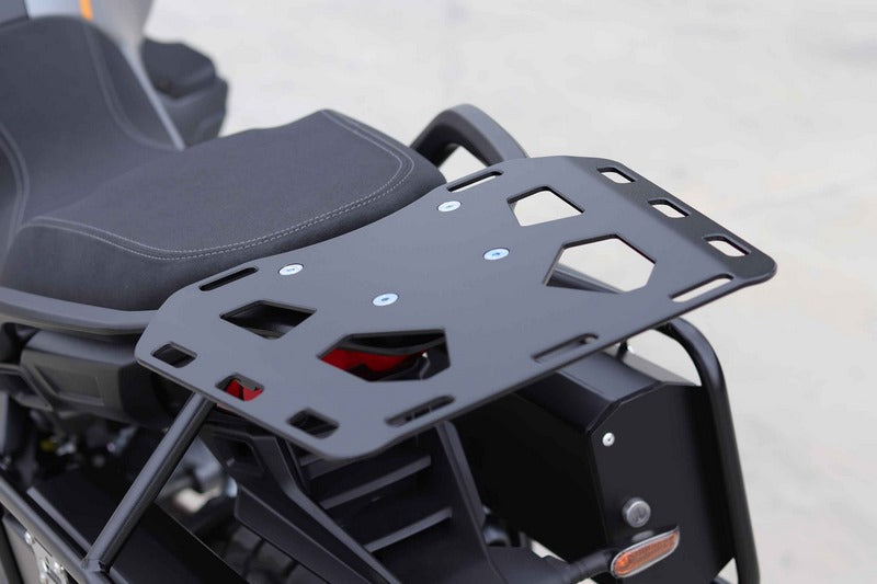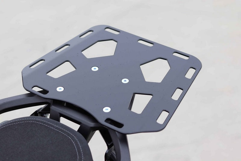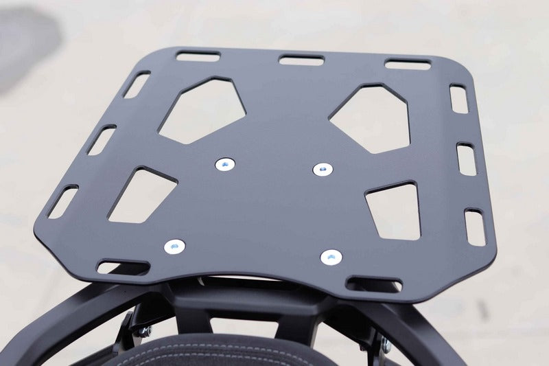 BUMOT Luggage Rack is constructed from a single piece of laser cut aluminum .The cutouts are shaped to accommodate a wide variety of straps and hooks to secure whatever luggage or larger items you need to carry. Each cutout and all edges are machined to eliminate wear on straps even on longer rides. The Luggage Rack is pre-drilled for easy integration with Rotopax mounts so you can carry fuel and water packs. Installation is quick and easy with the included hardware. Available in black finish. •Laser cut from 4mm aluminum