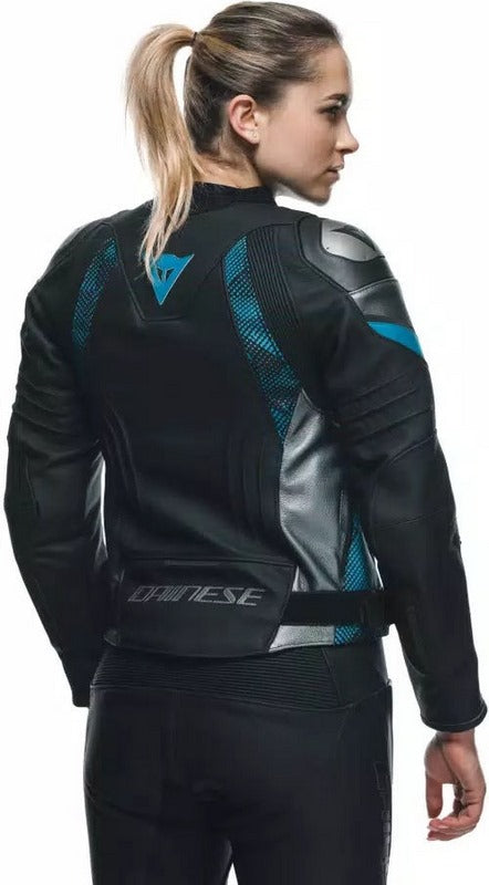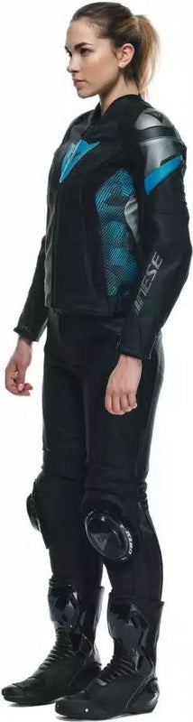 高速走行時でもバイクライダーを最大限に保護するため、Avro 5 WMNはダイネーゼスーツと同じテクニカルソリューションを採用しており、肩と肘には認証プロテクター、肩には取り外し可能なアルミニウムプレートが内蔵されています。