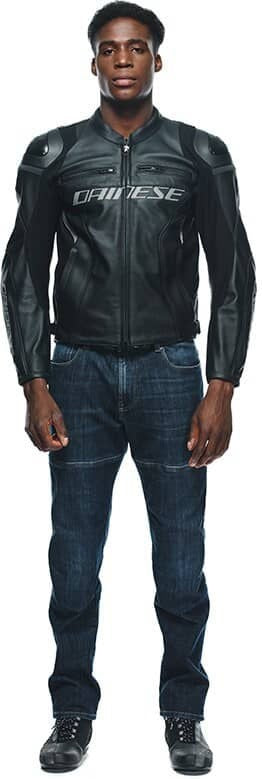 レーシング4レザーモーターサイクルジャケット、ダイネーゼコレクションの象徴的なアイテムで、スポーツライディングにも対応するアスレチックでタイトなフィット感が特徴です。