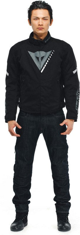 The Veloce D-Dry® motorcycle jacket is perfect in all conditions, from spring temperatures, to changeable autumn weather and even the cold of winter. Versatile and lightweight, it boasts an iconic Dainese design. The fixed D-Dry® waterproof membrane provides peace of mind when riding in the rain or bad weather. The removable thermal lining offers total versatility, for a jacket that is perfectly comfortable even on the coldest days. When riding in warm conditions, ventilation can be adjusted via the lateral air vents to ensure optimum comfort. Composite protectors on the shoulders and elbows uphold Dainese safety standards and can be supplemented with a G1 or G2 back protector, easily inserted into the dedicated pocket. The jacket is also equipped with a zipper safety system for attachment to Dainese motorcycle pants. Reflective details ensure perfect visibility on the road. It also offers ample storage space with two external side pockets with zipper, a zippered pocket on the chest, and two inside pockets.