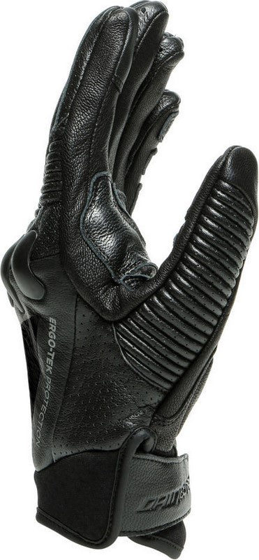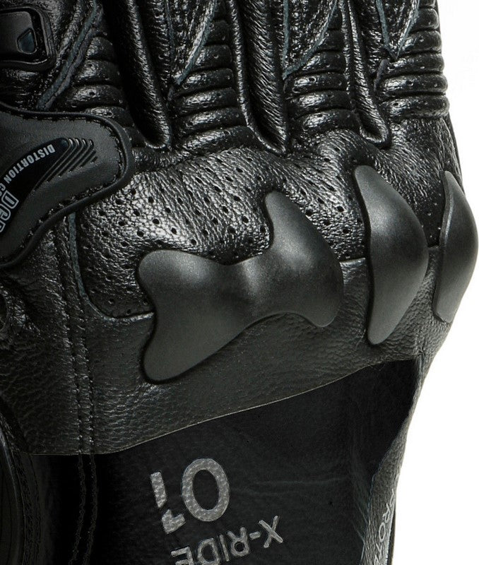 Protective racing technology meets the comfort of a glove designed for everyday use.X-Ride are the Dainese sports-cut leather gloves that use Ergo-Tek knuckle protection technology, created by mapping those areas of MotoGP™ riders' gloves most susceptible to impact. The result is a glove that combines maximum protection, thanks to its nylon-carbon plates, with significant freedom of movement.The little finger, one of the most sensitive and fragile parts in an impact, is protected with a special thermoplastic plate, which limits any damage owing to friction against the asphalt or other surfaces. The integrated DCP system also protects it against any twisting.For maximum comfort regardless of hand movement, large stretch areas are inserted on the back, upper fingers and thumb. The goatskin used to create X-Ride offers excellent abrasion resistance, maximum softness and flexibility.Smart Touch technology inserts on the fingers allow for the use of a smartphone, GPS or other touchscreen system with no need to remove the glove..d-pdp-video {width:100%; height:200px;} @media only screen and (min-width:758px) { .d-pdp-video {height:600px;} }