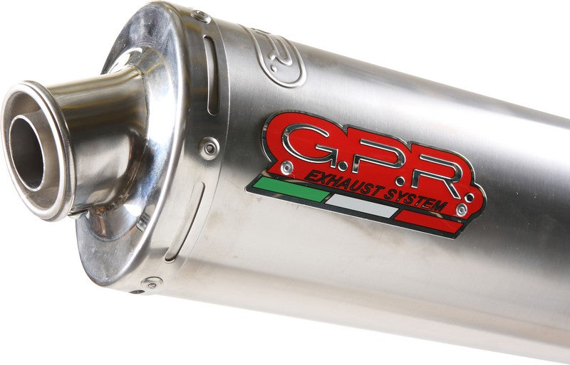 GPRエキゾーストシステム使用レース、それが特定のリンクパイプ、ブラケット、ホルダーとファスナー、リンクパイプとサイレンサー本体が純正TITANIUMによって行われている間、完全にステンレス鋼製のキャップ(AISI 304)が挙げられます。 GPRからモトGP及びSBKレースの経験のおかげで開発し、システムは楕円形、DIAMがあります。 90x120mm、先のバイクから垂下1,55 kgから約培地重量。 GPRは、元のホモロゲ文書や図面やビデオや写真帳として使用可能な命令を提供しています。アイテムは公認構成で使用されている場合、それはマッピングを必要としない、それは可能使用パニアと中央のスタンドで、SONDAラムダボスは、必要なときに含まれています。利用可能な多くのサウンドファイルや写真ギャラリー、製品は欧州指令の下で生産イタリア製手、ある、それは公道であり、それは国際保証の2年を持っています