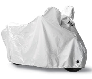 Hondaのロゴが入った防水・通気性のある生地を使用しています。 風雨や埃、傷などからバイクを守るのに便利です。 塗装にダメージを与える変動を防ぐため、底部を締め付けるロープを装備しています。 フロント下部にある2つの開口部には、Uロックを収納することができます。