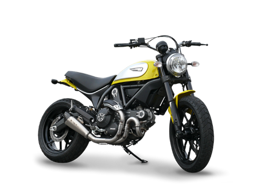 サイレンサー エボクストリームサテンシングルローポジション(カーボンエンドキャップ付きライン260mm)+オリジナルコレクター用リンクパイプ DUCATI SCRAMBLER(指令97/24/CE-2006/120/CE cap.9 によるサイレンサーホモロゲーション取得済み)。