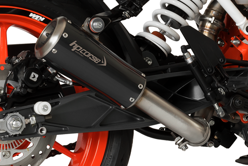 サイレンサー GP-07 ブラック ローポジション(アルミリング DB キラー付)+リンクパイプ スリップオン オリジナルコレクター KTM 390 DUKE 用(ホモロゲーション非対応、レース用パーツのみ)。
