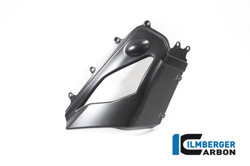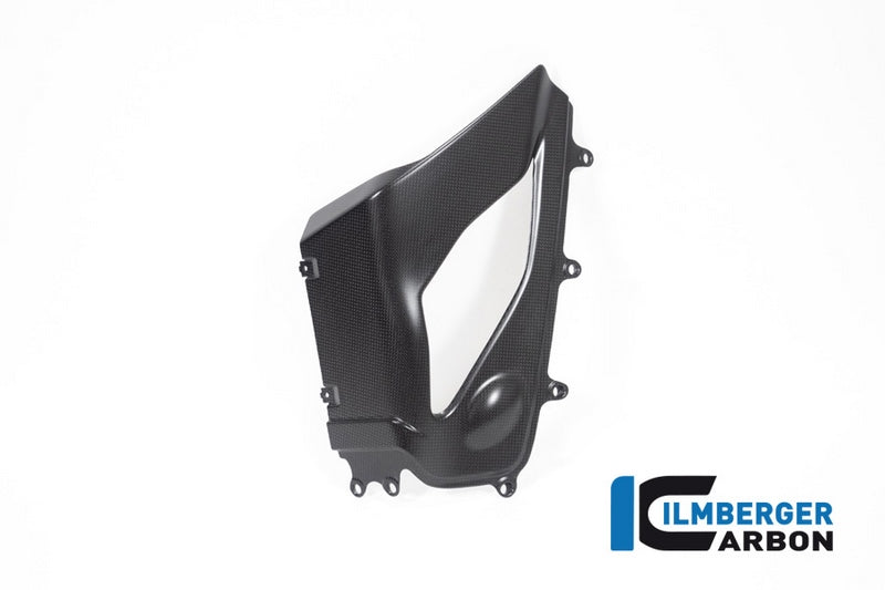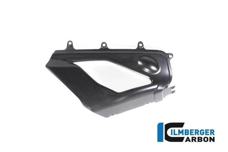 - The Ilmberger Carbon Bellypan (VUL.107.V22M.K + VUR.108.V422M.K) is compatible<In order to obtain a harmonious overall picture, the fiber layers are inserted and aligned in the mold by experts. The carbon part fits perfectly into the surrounding shapes of the motorcycle. The more of our parts are installed and combined, the more overwhelming the result.