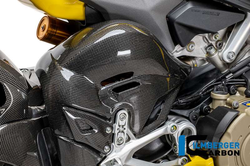 The glossy carbon heel protector for the right side of your Ducati Panigale V4 2025 is more than just an accessory – it is a statement. Developed by Ilmberger, a pioneer in carbon manufacturing, this heel protector offers not only protection but also an unparalleled aesthetic that makes your machine shine anew.