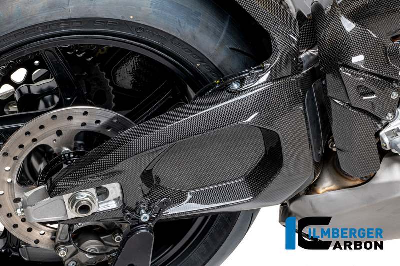 Give your Ducati Panigale V4 2025 an unparalleled look with the right swingarm cover made of glossy carbon. This cover perfectly complements the left side and ensures a uniform appearance. Manufactured by Ilmberger, a pioneer in carbon manufacturing, this product stands for the highest quality and innovation.