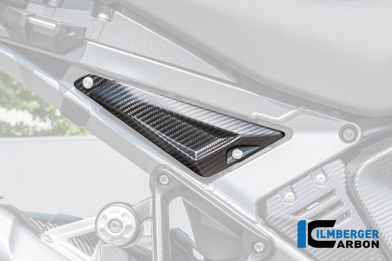BMW R 1300 GS Adventureの右側用、光沢のあるカーボン製フレーム・トライアングル・カバーで、保護とスタイルの完璧なコンビネーションを体験してください。この高品質な部品は、フレーム部分を保護し、調和のとれた全体的な外観を保証します。