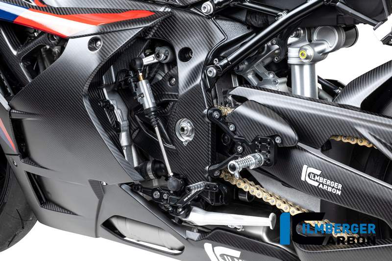 The sprocket cover for the BMW S 1000 RR Street 2019 not only offers protection but also effectively captures excess chain grease. Our experts carefully lay the fiber layers into the mold to ensure a harmonious overall appearance. The carbon part integrates seamlessly into the motorcycle's shapes and enhances the impressive appearance when several of our parts are combined.