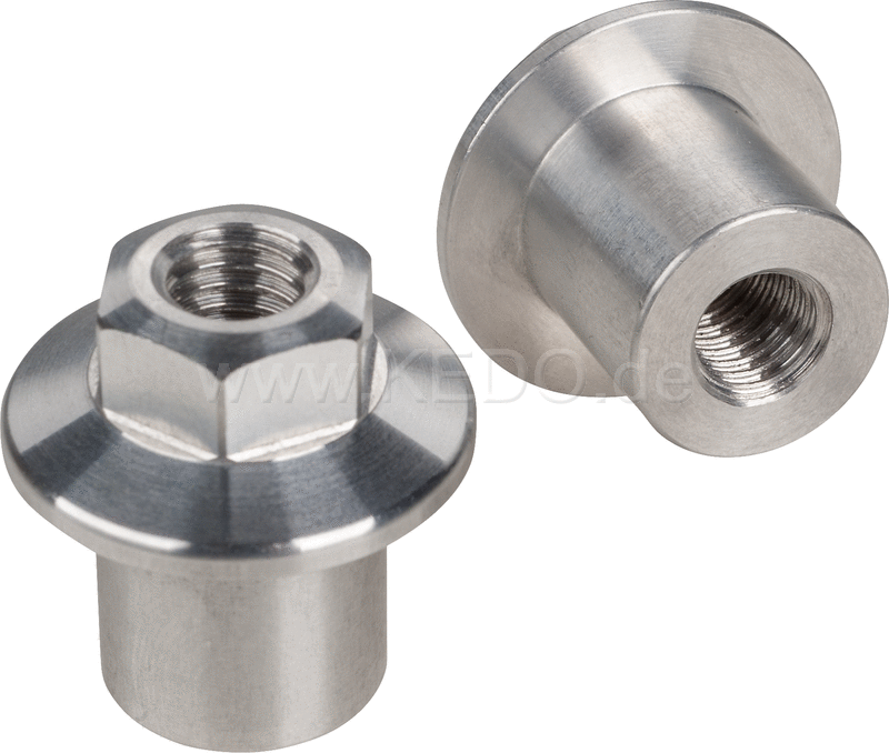 Kedo M8 Threaded Bushing Set 2 pieces 15x15mm aluminum with flange and hex-head A / F 13mm (suitable for rear fender replaces E. G. item 10073) | 10224