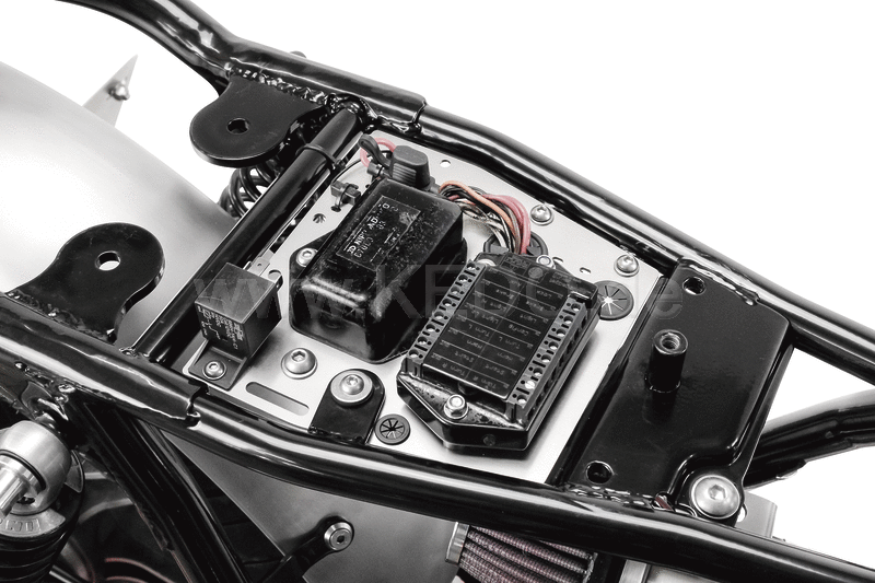 レースで実証済み。このアルミ製ブラケットは、CDIユニットやレギュレーターなど、必要に応じて他の電装品を取り付けることができます。