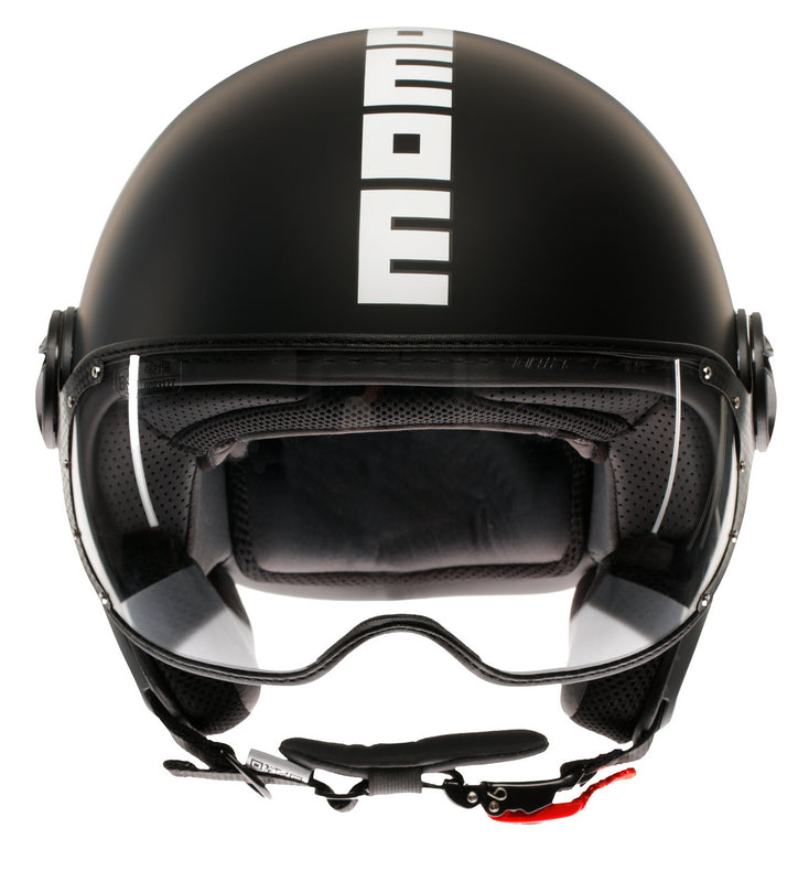 The visor, featuring two carbon fiber mounts with a matte finish, has been revamped with tauter, more modern lines, as has the visor mechanism, completely redesigned to make changing the lens itself easier and safer.