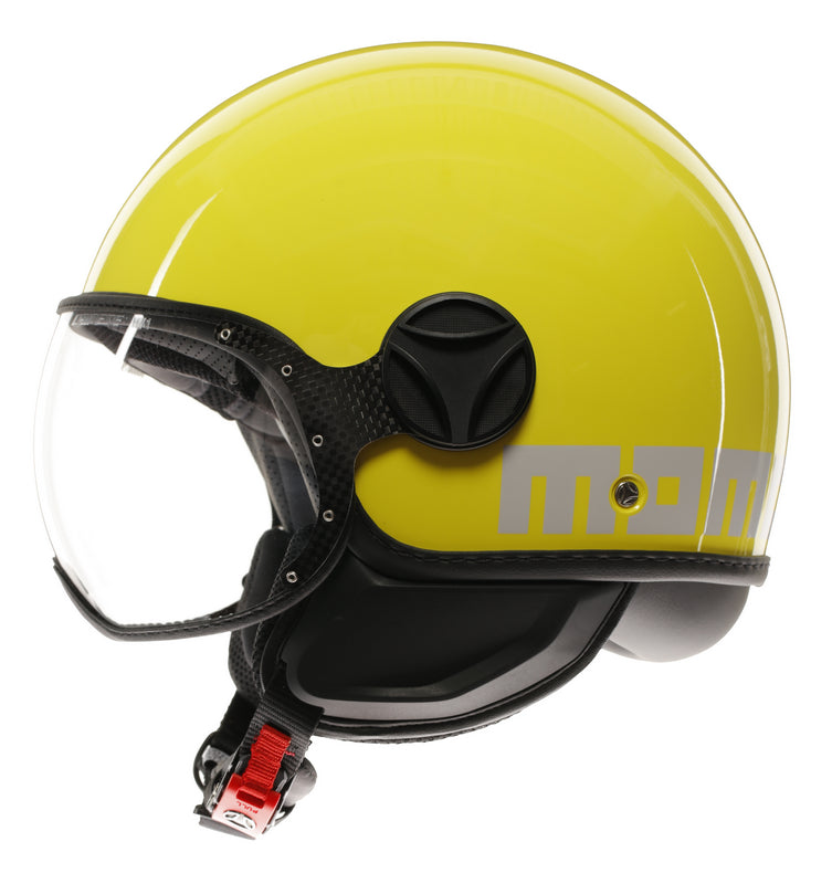 The visor, featuring two carbon fiber mounts with a matte finish, has been revamped with tauter, more modern lines, as has the visor mechanism, completely redesigned to make changing the lens itself easier and safer.