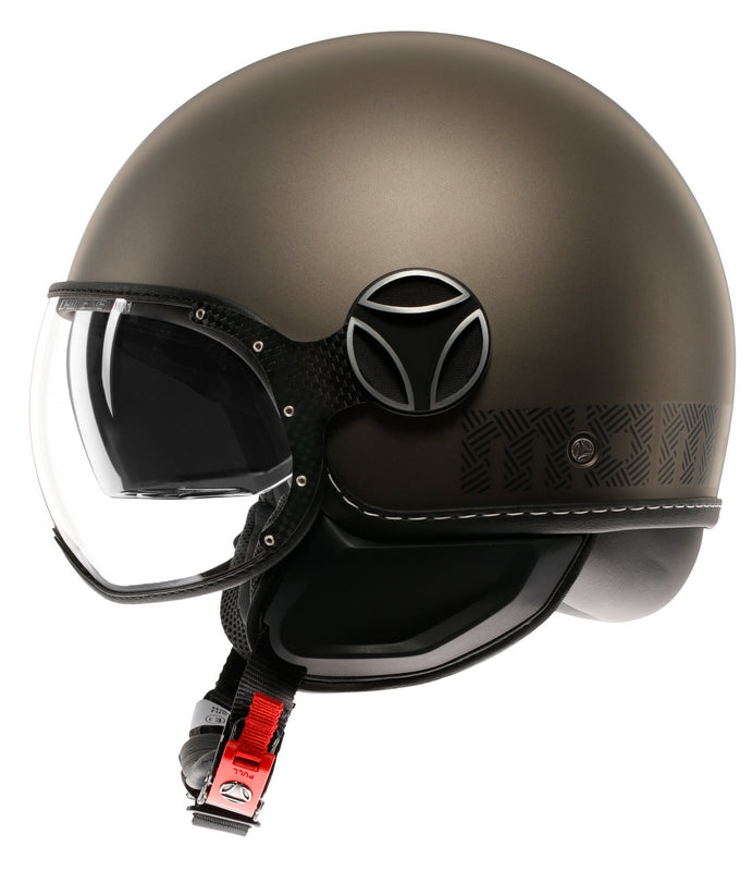 Characterized by artisanal details , such as the hand-stitched edges on the profile of the shell and visor, today the EVO model is renewed, with three shell sizes available, maintaining its rounded shape and the iconic “T” logo .