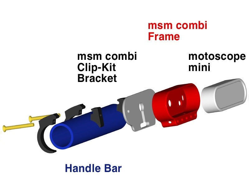 ハンドルバークリップキットブラケットは、コンビフレームと一緒に使用することで、ハンドルバーにモトスコープミニを取り付けることができます。