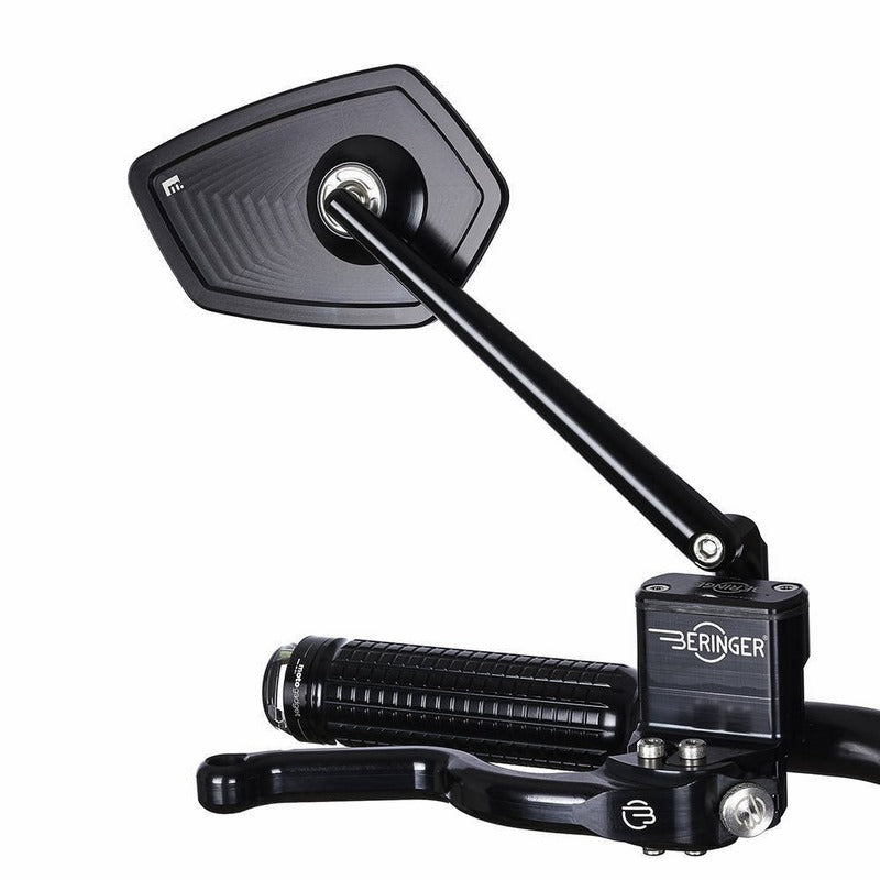 ミラー本体、ミラーアーム、ハンドルバーエンドのクランプは、無垢のアルミニウムからCNCマシンでフライス加工され、高品質のアルマイト処理が施されています。すべてのネジはステンレス製です。ステム付きミラー・モービュー・レースは、小型でスポーティなモーターサイクルにフィットするデザインです。それはM10サイズのすべてのネジ穴に取り付けることができます。