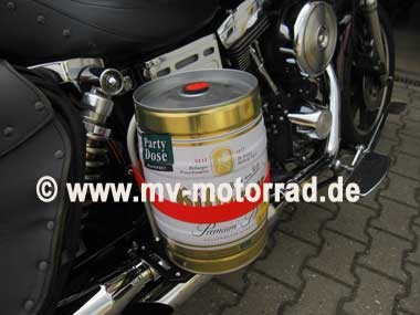 Now, the rack can now be loaded with a bag,luggage roll, air mattress or a reserve canister. There is also place for a keg of beer for the biker meeting.