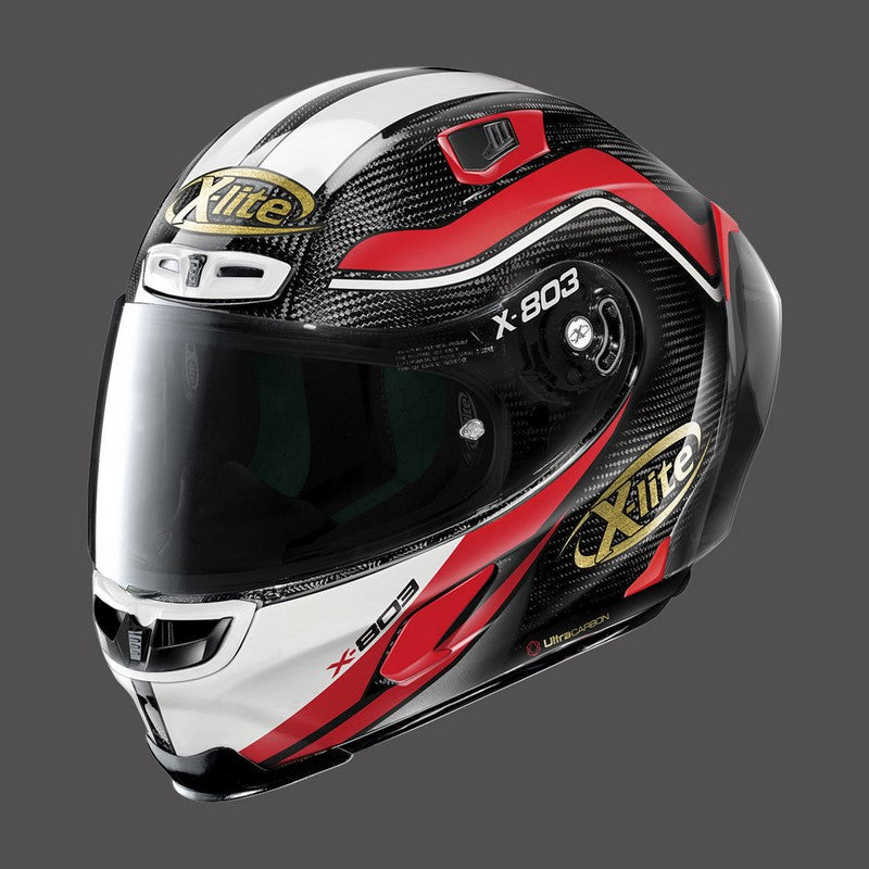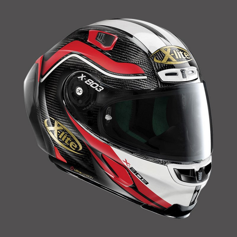 -NOLAN Emergency Release System)、ダブルアクションシステムによる信頼性の高いバイザー機構、効率的なRAF(Racing Air Flow)ベンチレーションシステム、カーボンフィッティングレーシングエクスペリエンスインナーコンフォートパッド(革新的なネット構造を採用)などが挙げられます。X-803 RS ULTRA CARBONは、レーストラックでの経験を最大限に楽しみたいモーターサイクリストのための、最も高級なレーシングフルフェイスヘルメットとして発表されました。