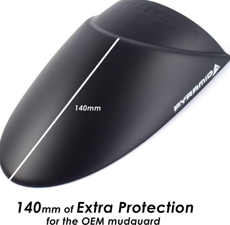 ピラミッドフロントマッドガードエクステンション、エクステンダフェンダは、高品質のABSから製造される当社のトレードマーク製品の一つです。エクステンダフェンダは、フロントマッドガードに耐久性と長持ちするエクステンションを提供します。この製品は、エキゾーストヘッダーやエンジン下部を汚れから守り、高価なラジエーターを石によるダメージから守ります。エクステンダ・フェンダは、モーターサイクルのフロントガードの輪郭に沿うように特別に設計されており、機械的に取り付けるためのプラスチック製リベットと、フロントマッドガードに穴を開けたくない方のために特別に入手した「スティックフィットパッド」が付属しています。エクステンダ・フェンダは取り付けが簡単で、包括的な取り付け説明書と上記のように必要なすべての金具とともに安全に梱包されて届きます。