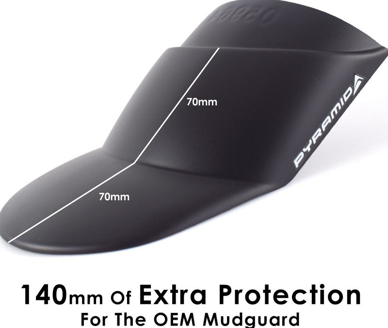 ピラミッドのフロントマッドガードエクステンション、エクステンダ・フェンダは、高品質なABSから製造されるピラミッドのトレードマークとも言える製品です。エクステンダフェンダは、フロントマッドガードに耐久性と長持ちするエクステンションを提供します。この製品は、エキゾーストヘッダーやエンジン下部を汚れから守り、高価なラジエーターを石によるダメージから守ります。エクステンダ・フェンダは、モーターサイクルのフロントガードの輪郭に沿うように特別に設計されており、機械的に取り付けるためのプラスチック製リベットと、フロントマッドガードに穴を開けたくない方のために特別に入手した「スティックフィットパッド」が付属しています。エクステンダ・フェンダは取り付けが簡単で、包括的な取り付け説明書と上記のように必要なすべての金具とともに安全に梱包されて届きます。