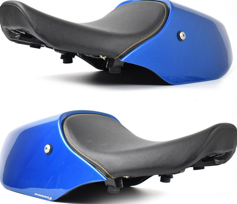 ピラミッドシートカウルは、個性的なスタイリングでシングルシートのレースルックを提供するために、あなたのバイクのために特別に設計された当社のトレードマーク製品の一つです。ピラミッドシートカウルは、シンプルな取り付け方法と豊富なカラーバリエーションで、安全な梱包でお届けします。オートバイの改造は必要ありません。私たちは、特に地面から低い位置にある塗装された製品について、石の欠けやひび割れの影響を最小限に抑えるために、常に私たちのVenture Shield保護フィルムの使用をお勧めします。ベンチャーシールドを車体の低い前方部分に装着しないと、残念ながら石やその他の破片によるダメージは避けられません!