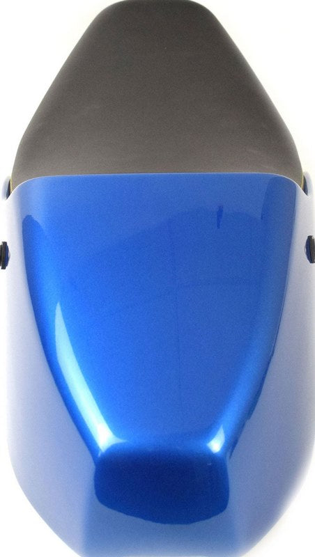 ファイバーグラス製で、ヤマハXSR900にマッチする「レジェンドブルー」のハンドペイント仕上げ