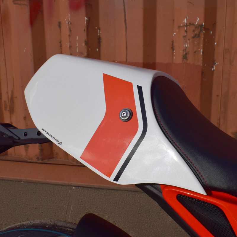 ピラミッドシートカウルは、個性的なスタイリングでシングルシートのレースルックを提供するために、あなたのバイクのために特別に設計された当社のトレードマーク製品の一つです。ピラミッドシートカウルは、シンプルな取り付け方法と豊富なカラーバリエーションで、安全な梱包でお届けします。オートバイの改造は必要ありません。私たちは、特に地面から低い位置にある塗装された製品に、石の欠けやひび割れの影響を最小限に抑えるために、常に私たちのVenture Shield保護フィルムの使用をお勧めします。ベンチャーシールドを車体の低い前方部分に装着しないと、残念ながら石やその他の破片によるダメージは避けられません!