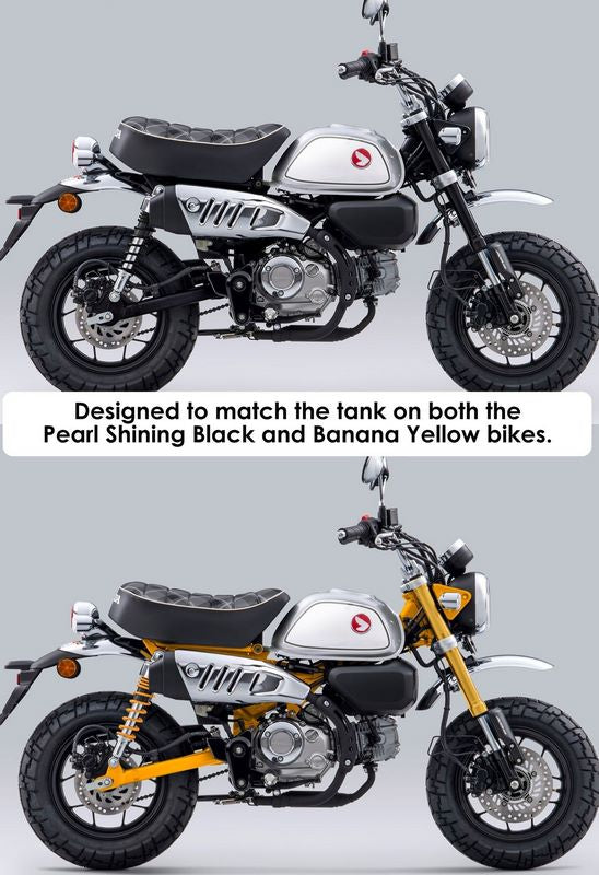 このカラーリングは、パールシャイニングブラックまたはバナナイエローのフレームを持つバイクのタンクにマッチするようにデザインされています。