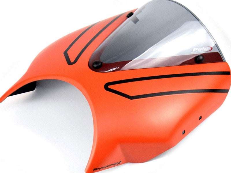 ピラミッド・フライ・スクリーンは当社のトレードマークとも言える製品で、ユニークなスタイルとカラーマッチのオプションであなたのバイクを他とは一線を画すよう特別にデザインされています。FLY SCREENは取り付けが簡単で、可能な限りモーターサイクルの既存の取り付けポイントを利用します。当社のフライスクリーンは、包括的な取り付け説明書および必要と思われる追加金具とともに安全に梱包されて届きます。