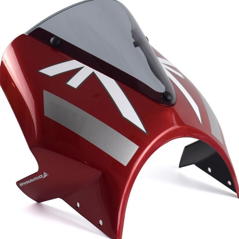 ピラミッド・フライ・スクリーンは当社のトレードマークとも言える製品で、ユニークなスタイルとカラーマッチのオプションであなたのバイクを他とは一線を画すよう特別にデザインされています。FLY SCREENは取り付けが簡単で、可能な限りモーターサイクルの既存の取り付けポイントを利用します。当社のフライスクリーンは、包括的な取り付け説明書および必要と思われる追加金具とともに安全に梱包されて届きます。