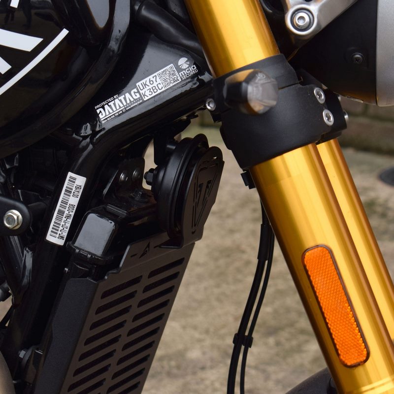 ピラミッドホーンカバーは、フロントホイールから跳ね上げられる破片や水しぶきからホーンを保護します。取り付けとメンテナンスが簡単なホーンカバーは、包括的な取り付け説明書と必要な追加金具とともに安全に梱包されて届きます。 バイクの改造は必要ありません。