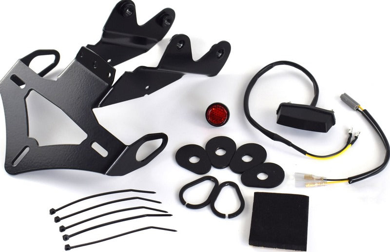ピラミッドテールタイディは、あなたのオートバイのために特別に設計され、リアリフレクタードットとLEDナンバープレートライトが含まれています。アフターマーケットインジケーターを使用したい方のためにアダプターも付属しています。ピラミッドテイルタイディは、包括的な取り付け説明書と、必要と思われる追加金具と共に安全に梱包されて届きます。バイクの改造は必要ありません。