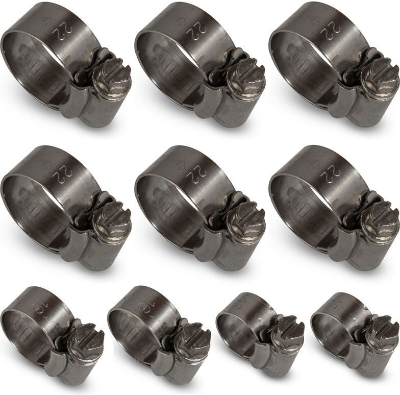 このホースクランプはマリングレードの304 W5ステンレススチール製で、クランプ力を高めるために13mm幅のバンドを採用しています。