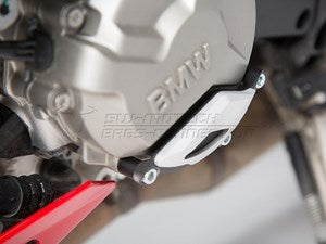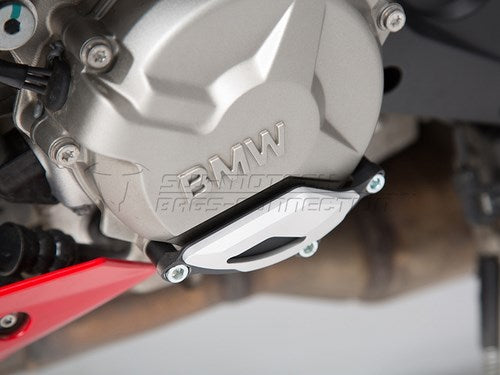高強度アルミ合金を機械加工したエンジンケース両側の保護パッドです。 接地や事故に備えたエレガントな構造で、エンジンケースの露出部への深刻な損傷を効果的に防止します。 プロテクターはブラックアルマイト処理されたアルミフレームで構成されており、左側には交換可能なアルミパッド(シルバーアルマイト処理)を装備しています。 特長