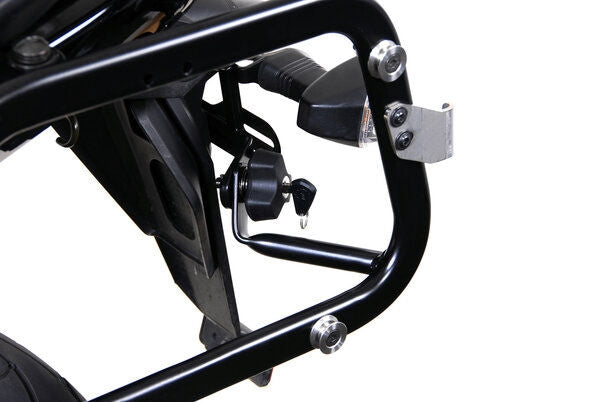 Pick-pocket protection: the EVO side carrier can be removed in no time thanks to the Quick-release fasteners. To protect against theft, we recommend replacing a QUICK-LOCK quick-release fastener with the lockable anti-theft device. It reliably secures the EVO side carrier to the motorcycle.This set contains two anti-theft devices. The locks lock simultaneously, so you only need one lock for both sides. A spare key is also included in delivery.