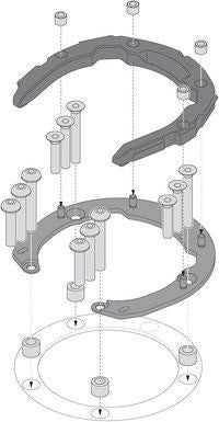機械的なロック機構でタンクバッグを固定し、マグネットでリングの両パーツを結びつけます。高精度のロック形状を持つ堅牢なグラスファイバー強化プラスチックが、どんな状況でもタンクバッグをしっかりと固定します。