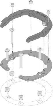 機械的なロック機構でタンクバッグを固定し、マグネットでリングの両パーツを結びつけます。高精度のロック形状を持つ堅牢なグラスファイバー強化プラスチックが、どんな状況でもタンクバッグをしっかりと固定します。