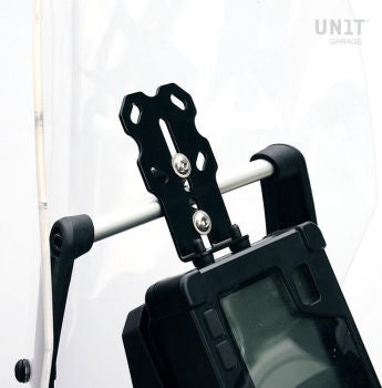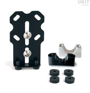 CNC加工された2つのエルガルブラケットのおかげで、直径12mmから25mmのチューブフレームに安全に取り付けるためのシステムを研究してきました。どのようなチューブにも固定でき、スライド式のベースプレートにより、さまざまな取り付け状況に完璧に適応します。ベース下部の2つのゴム製ストッパーは、サポートとして機能します。スライディングベースは4つの位置に取り付けることができます。