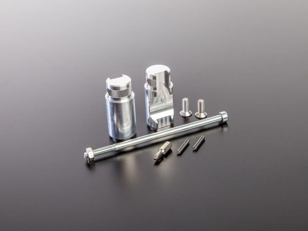 バイクハンドルバー用の取付セットで、バーエンド部にアウターØ1インチ、インナーØ21.5mm(添付図面参照)があります。