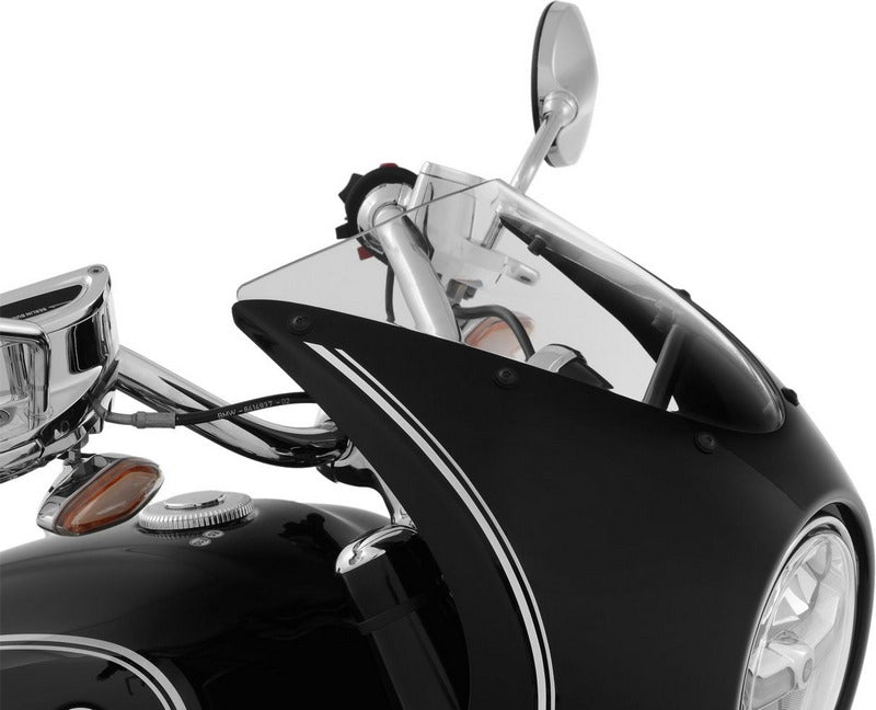 コックピットフェアリング「Rock n Roll」のスタイリッシュな外観を強調する、スポーティなスクリーンレンズ(透明)。ライダーの方を向いたスリムで低い形状のこのレンズは、コックピットフェアリングのスポーティな外観を強調します。空気力学的に完璧に調整されたスクリーンは、コックピットフェアリングと一体化し、層流の最適化を実現しています。