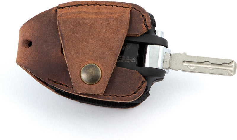 ベジタブルタンニンレザーを使用したキーレスライドキー用ポーチ。バッグメーカーのクラフツマンシップによる高品質なハンドメイド生産。