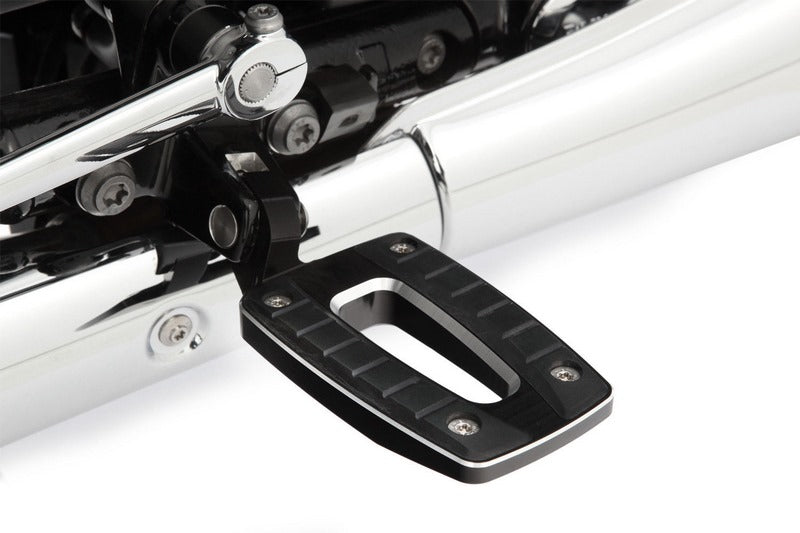 ビッグボクサーを視覚的にグレードアップする精巧なローフットレストセットは、足が20mmと大幅に低くなり、膝の角度が開いて大きくなることで、徹底的にリラックスした快適なシッティングポジションになります。これにより、窮屈な膝の角度による痛みや苦痛などを軽減し、本来は避けることができるのです。