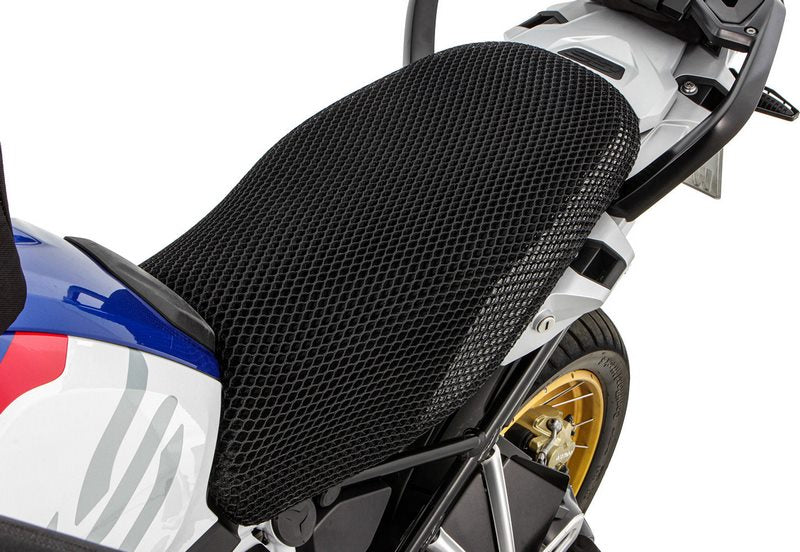 このシートカバーは、BMWのオリジナルバイクのシートの温度調節を行います。カバーは立体的に構成されており、厚さは8ミリなので、ライディング中に空気を循環させることができます。重さがあっても完全には妥協しません。通気性が確保されているだけでなく、雨の中でもシートが濡れないようになっています。また、クールカバーは太陽光の下でも熱を持ちません。